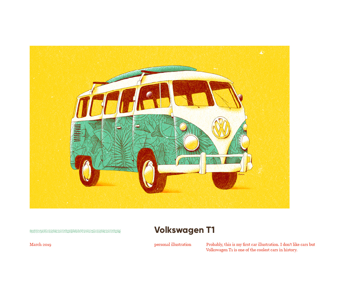Artworks which are mostly personal works created in 2019 and this year is not over yet :) This illo package contains Flesh and Bone Unofficial Poster, Star Wars Episode 1 Unofficial Poster, Lost Sound 2019 Poster, Volkswagen T1, a tattoo project and Absolut competition entry.